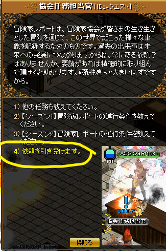 協会レポクエ 1の3を頂くときにはロシペル討伐との同時である事、110Lv前後にしておく事。