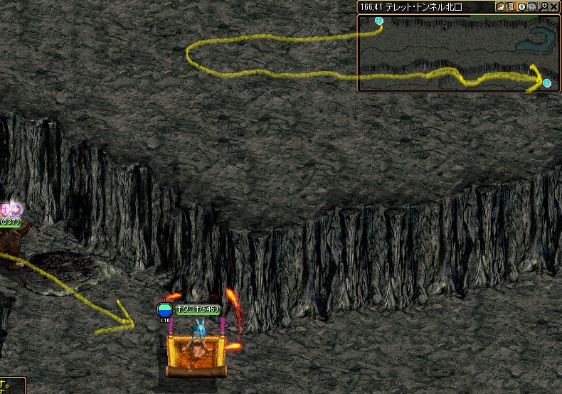 第2エリアは広いトンネルだけど 遠距離攻撃Mobが虎視眈々としてるので遠回りで駆け抜け。